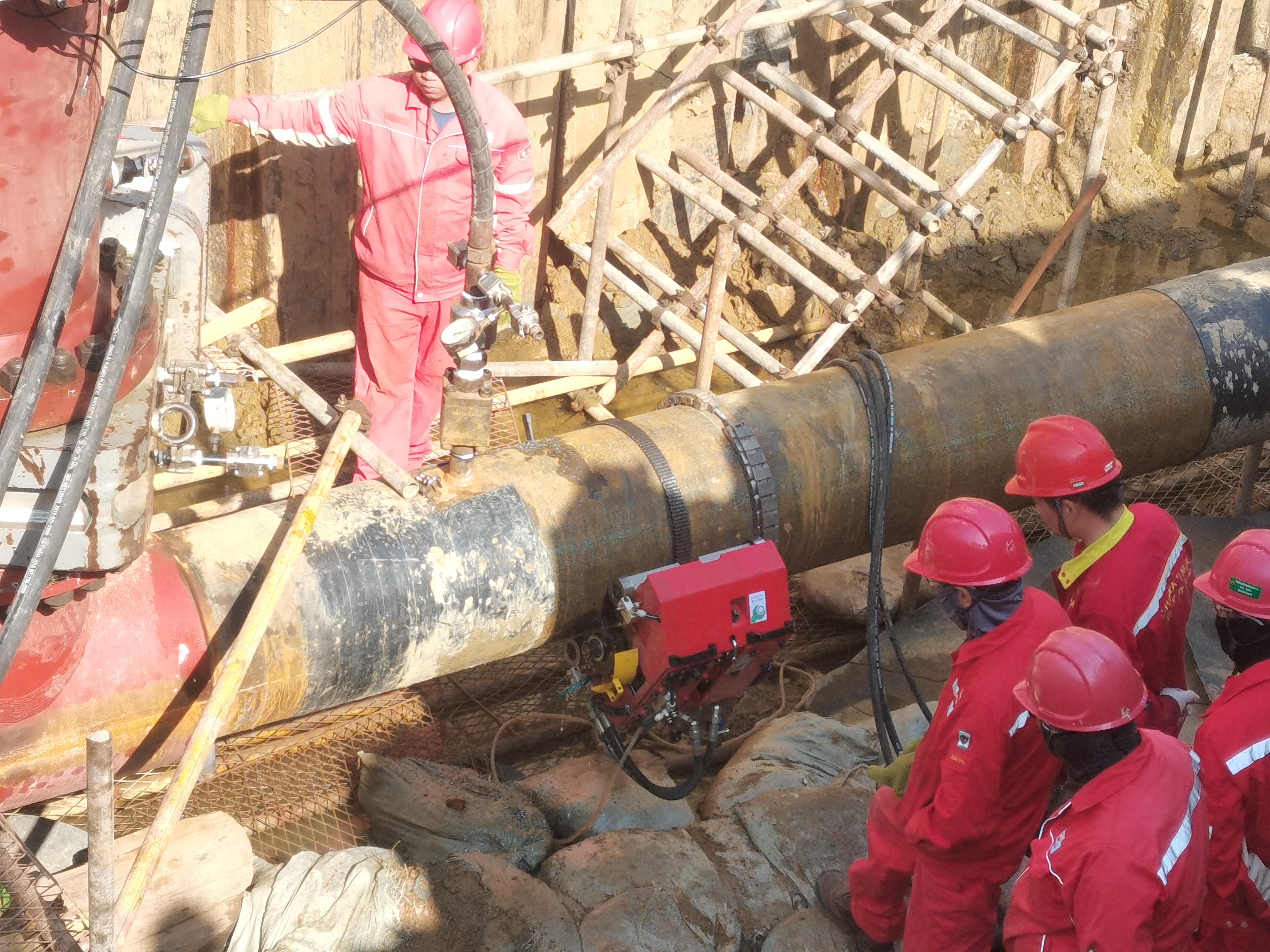 黃梅區(qū)高壓管線改遷管道冷切割機斷管應用
